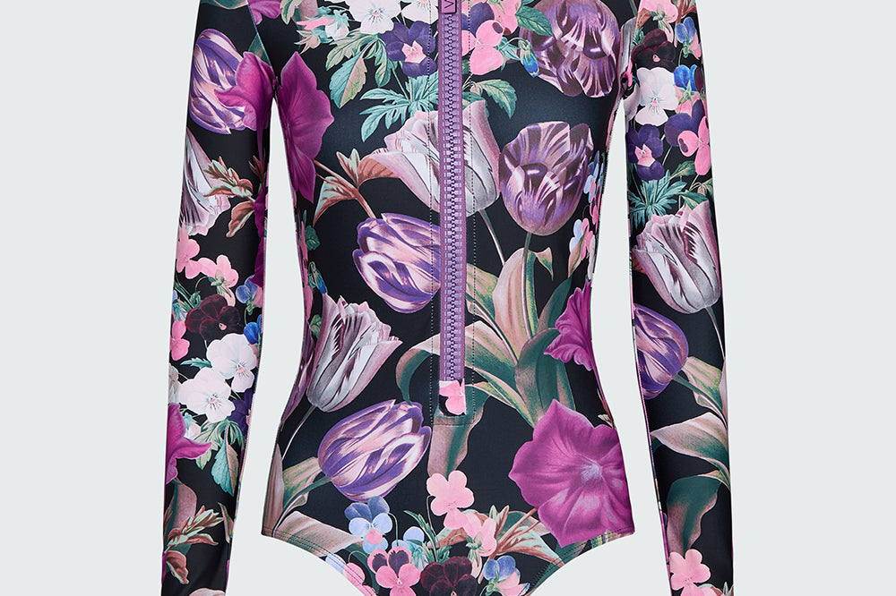 Ryann, our elegant mockneck bodysuit. Crafted from our sun protective UPF 50+ fabric that blocks 98% of the sun’s UV rays. Ryann features our signature Italian zipper, long sleeves, medium back coverage and high cut hips. Our Ryann bodysuit can also be worn as a swimsuit, allowing you to live your best active life safely, effortlessly and elegantly. You will feel amazing in and out of the water.